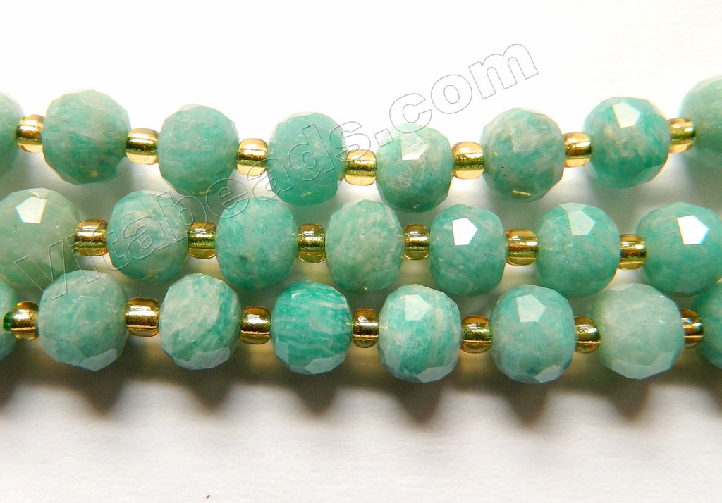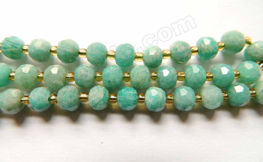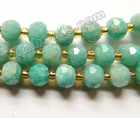 Natural Russian Amazonite A - Faceted Rondel Drum w/ Spacers 15"
