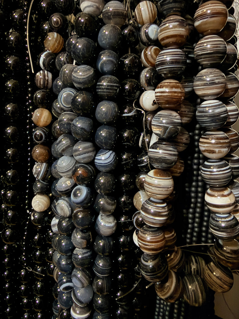 Black Sardonix Agate AA - Big Round Beads 16"