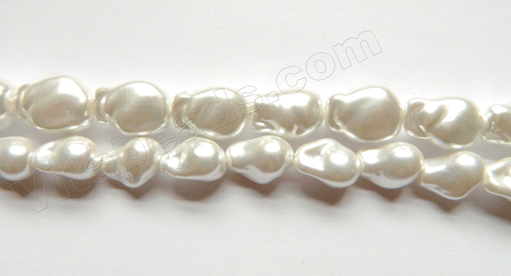 Cream White South Shell Pearl - Free Form Drilled Through Baroque Nuggets 15.5"