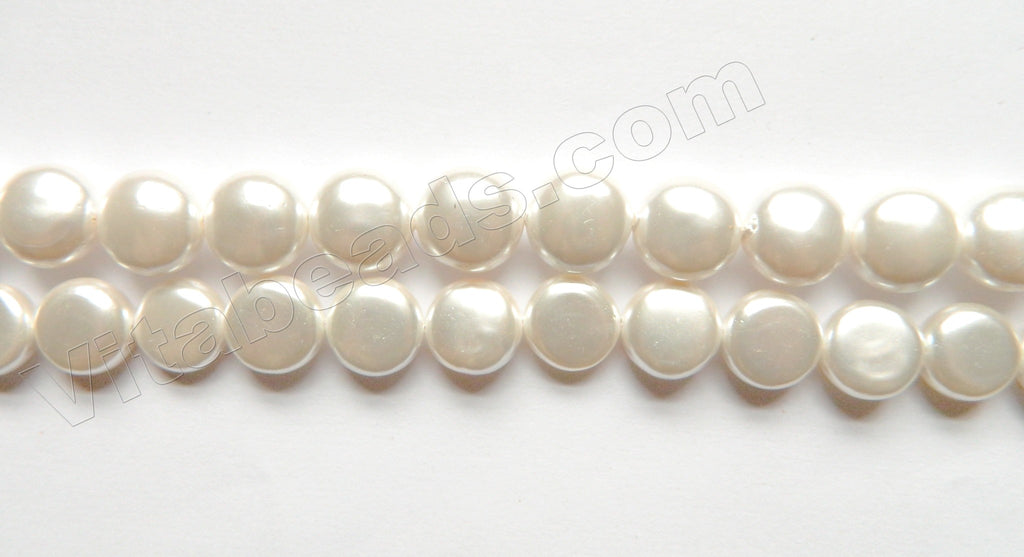 Cream White South Shell Pearl - Puff Coin Beads 15.5"