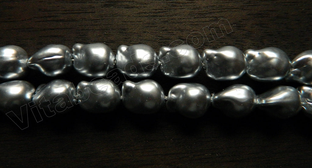 Light Grey South Shell Pearl  -  Free Form Drilled Through Baroque Nuggets  16"