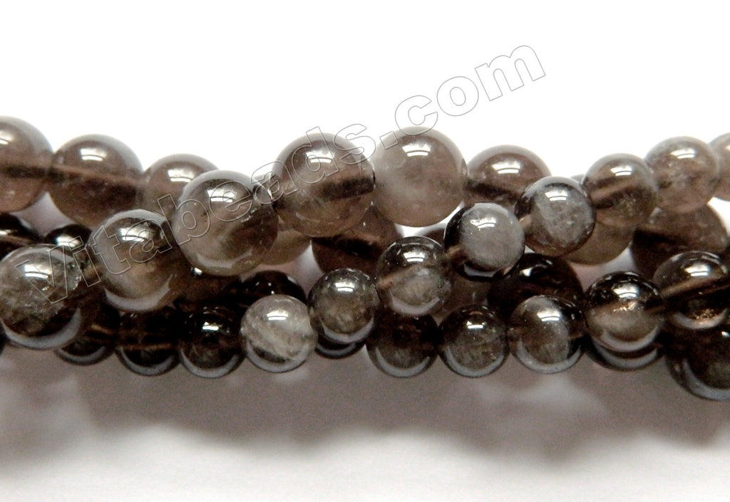 Natural Silver Grey Smoky Quartz - Smooth Round Beads 15"
